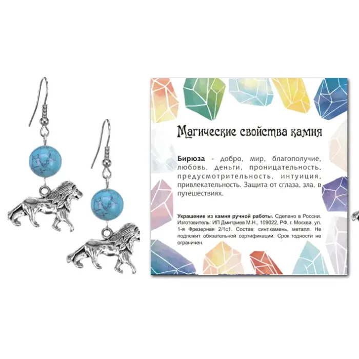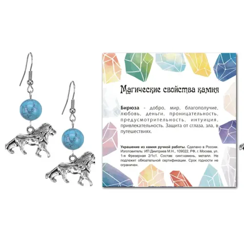 Серьги Лев (храбрость, власть, благосостояние), Бирюза SEB07-06-2073