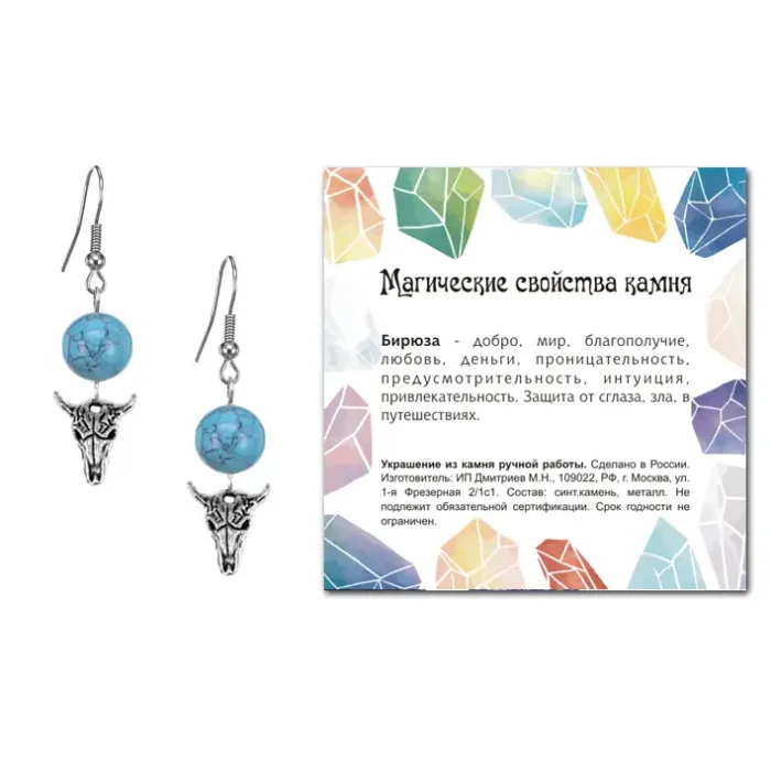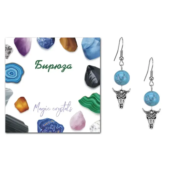 Серьги Череп быка (сила, мужество, защита), Бирюза SEB07-06-2076