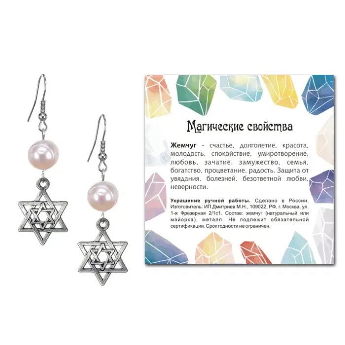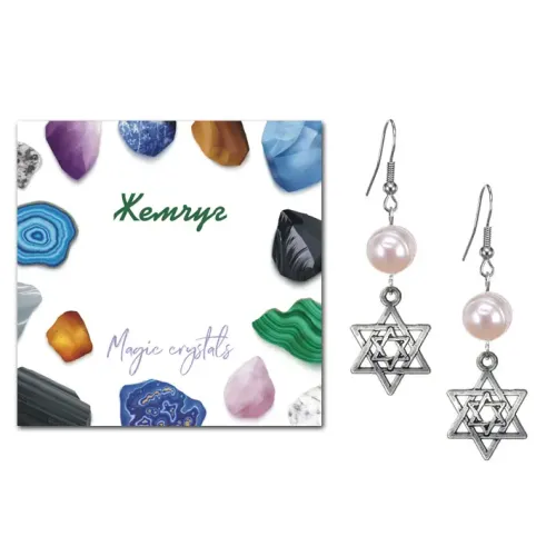 Серьги Звезда Давида (от сглаза и зла), Жемчуг натуральный SEB07-07-02