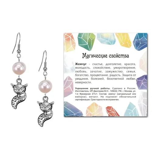 Серьги Лиса (страсть, интуиция), Жемчуг натуральный SEB07-07-03