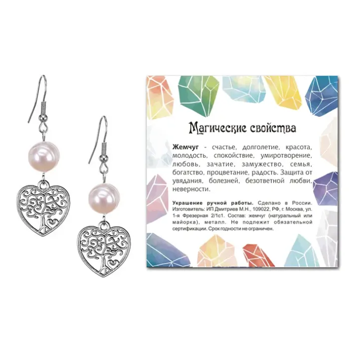 3. Каждая пара упакована в прозрачный пакет с подвесом и комплектуется вкладышем с описанием значения камня, что делает их отличным подарком для близких.