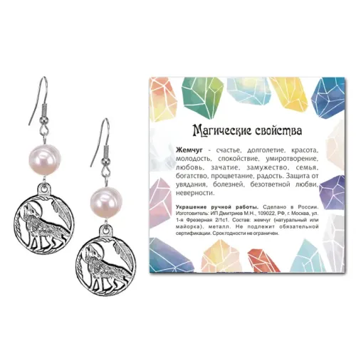 Серьги Волк (защита, сила, победа), Жемчуг натуральный SEB07-07-07