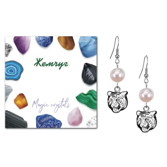 Серьги Тигр (защита, сила, победа), Жемчуг натуральный SEB07-07-10