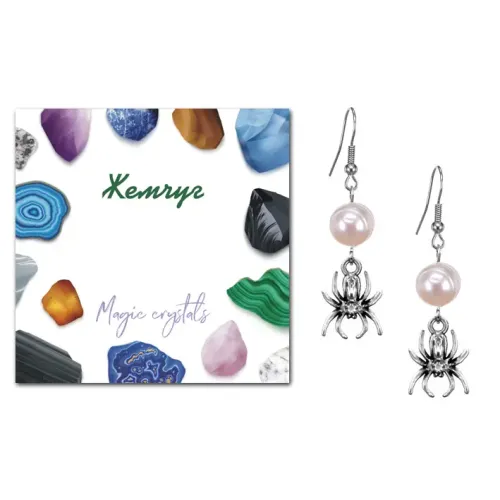 Серьги Паук (защита, трудолюбие, достаток), Жемчуг натуральный SEB07-07-14