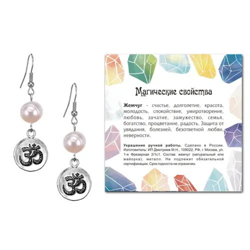 Серьги Ом (защита и духовное развитие), Жемчуг натуральный SEB07-07-18