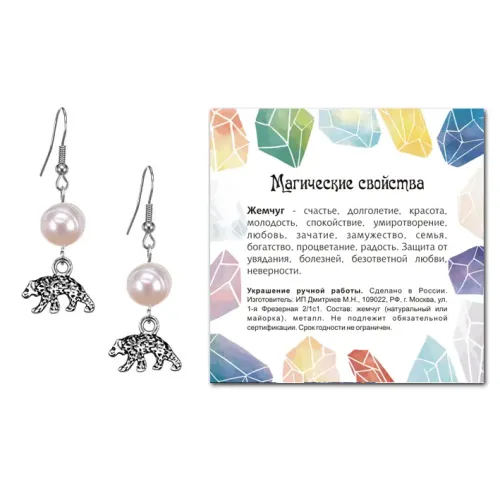 Серьги Медведь (защита, сила, победа), Жемчуг натуральный SEB07-07-19