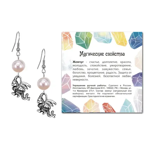 - Упаковка включает прозрачный пакет с подвесом и вкладыш с описанием значения камня, что делает серьги отличным подарком.