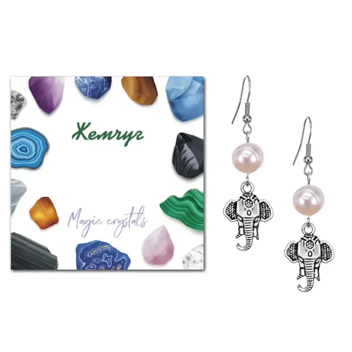 Серьги Слон (мудрость, сила, долголетие), Жемчуг натуральный SEB07-07-26