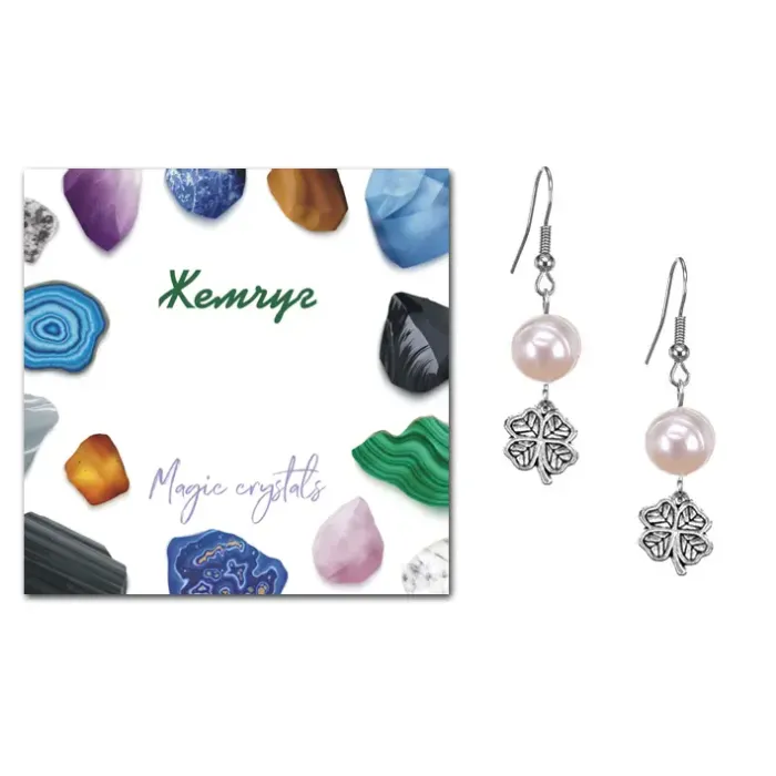 Серьги Клевер (удача, везение), Жемчуг натуральный SEB07-07-29