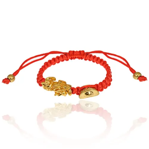 Браслет из красной нити Пи Щу и Слиток Богатства BS413