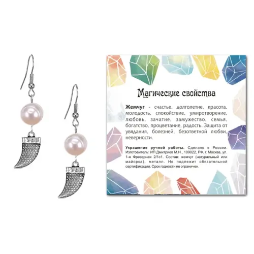 - Серьги упакованы в прозрачный пакет с подвесом и укомплектованы вкладышем с описанием значения камня.