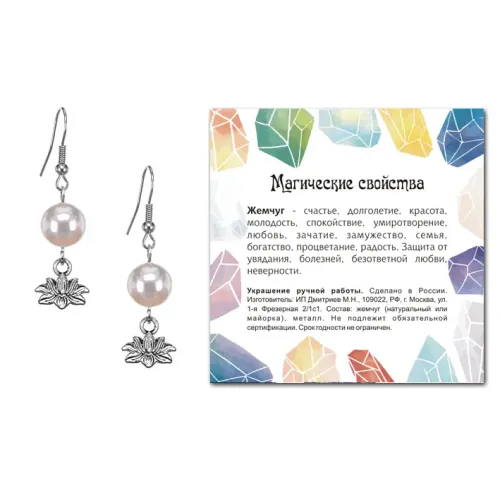 4. Упаковка включает прозрачный пакет с подвесом и вкладыш с описанием значения камня, что делает эти серьги отличным подарком или сувениром.