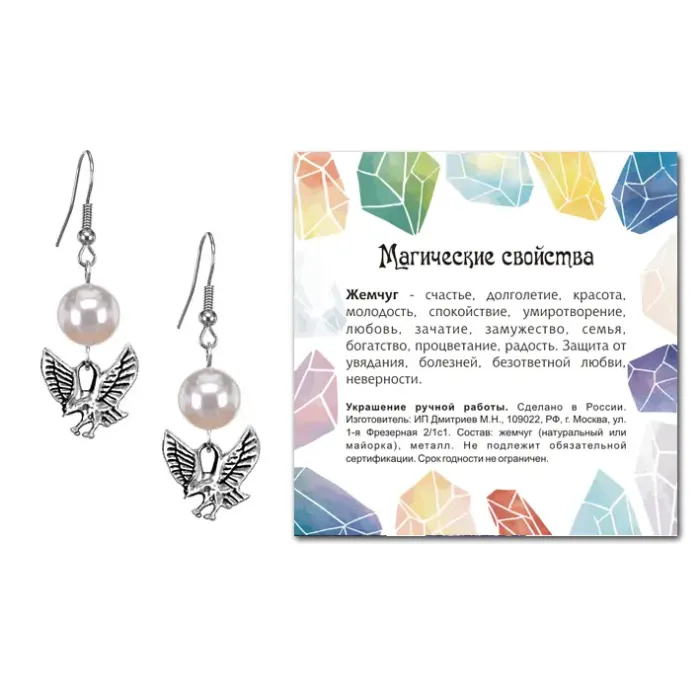 Серьги Орёл — это стильные серьги-амулеты из коллекции MAGIC CRISTALS 2. Они символизируют защиту, силу и победу, что делает их не только украшением, но и оберегом. Изготовленные с использованием высококачественного синтетического жемчуга Майорка диаметром 10 мм, они добавят элегантности любому образу.