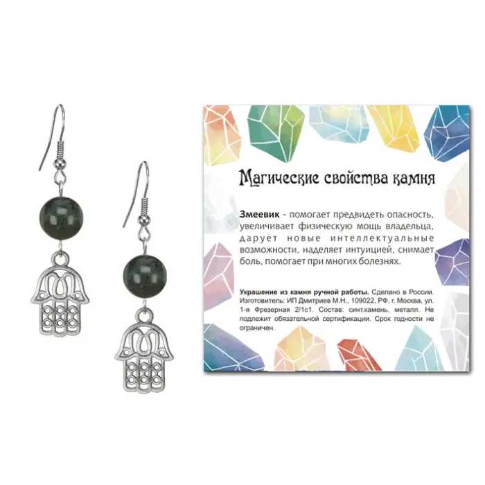 Серьги Хамса (от сглаза и зла), Змеевик SEB07-09-01