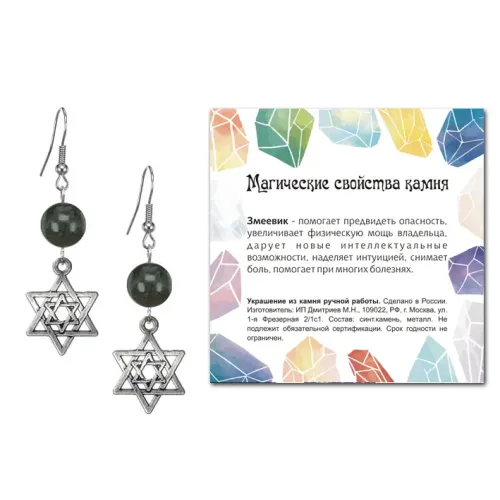 Серьги Звезда Давида (от сглаза и зла), Змеевик SEB07-09-02