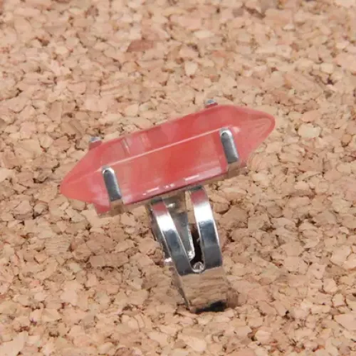 Кольцо из нержавеющей стали с натуральным камнем розовый халцедон.