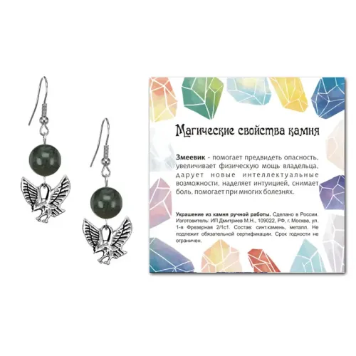 Серьги Орел (защита, сила, победа), Змеевик SEB07-09-24
