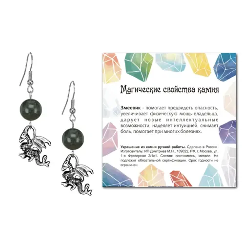 Серьги Дракон (удача, могущество, успех), Змеевик SEB07-09-25