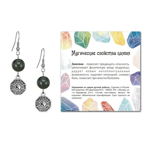 Серьги Багуа (защита от негативной энергии), Змеевик SEB07-09-34