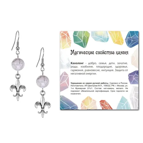- В комплекте вкладыш с описанием значения камня добавляет ценности каждой паре серёг.