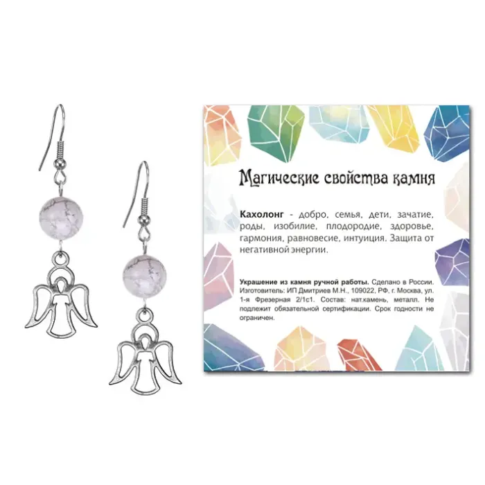 Серьги Ангел-хранитель — это не просто украшение, а настоящий амулет, который символизирует защиту и поддержку. Изготовленные из натурального камня Кахолонг, эти серьги из коллекции MAGIC CRISTALS 2 станут отличным дополнением к любому образу.