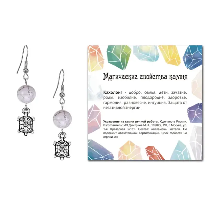 Серьги Черепаха (здоровье и долголетие), Кахолонг SEB07-10-16
