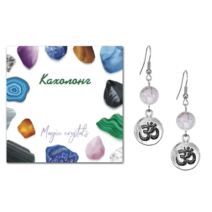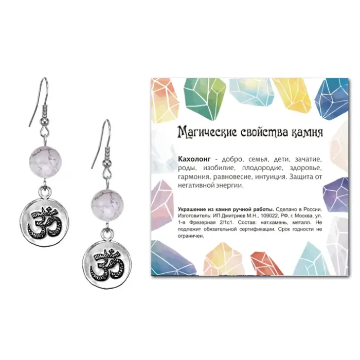 Серьги Ом (защита и духовное развитие), Кахолонг SEB07-10-18