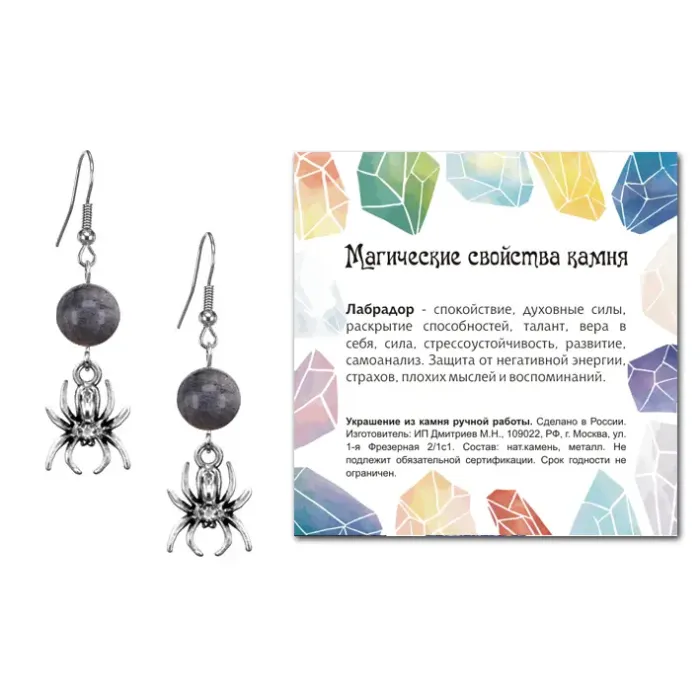 Серьги Паук (защита, трудолюбие, достаток), Лабрадор SEB07-11-14
