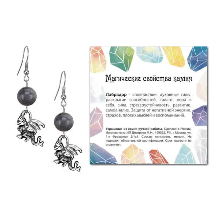4. Упаковка включает прозрачный пакет с подвесом и вкладыш с описанием значения камня, что делает эти серьги отличным подарком или сувениром.