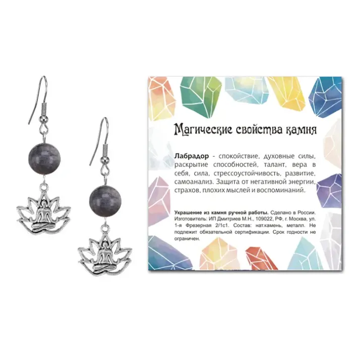 Серьги Лотос (гармония и развитие), Лабрадор SEB07-11-2064