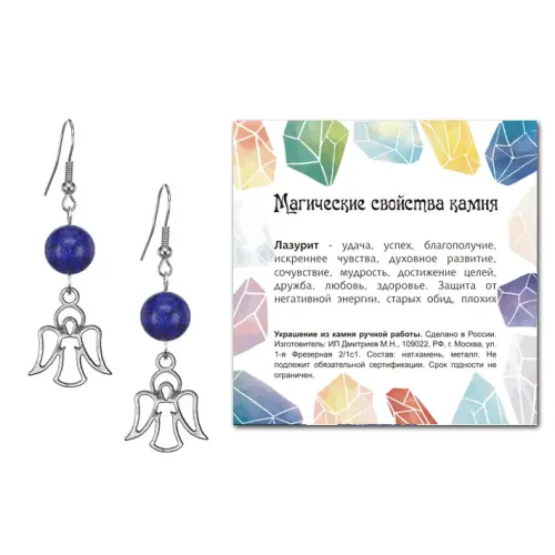 4. Каждая пара упакована в прозрачный пакет с подвесом и дополнена вкладышем с описанием значения камня Лазурит.