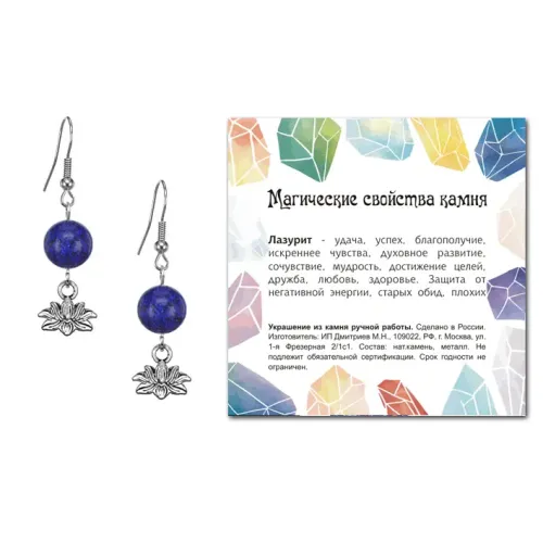 Серьги-амулеты коллекции MAGIC CRISTALS 2, выполненные с использованием натурального камня Лазурит, символизируют гармонию и развитие. Эти стильные серьги имеют диаметр бусин 10 мм и изготовлены из бижутерного сплава с покрытием под серебро, что придаёт им элегантный вид. Тип швензы — крючок, обеспечивающий удобство ношения. Каждая пара упакована в прозрачный пакет с подвесом и дополнена вкладышем с описанием значения камня, что делает их отличным подарком или личным амулетом. Лазурит традиционно ценится за свои свойства привносить спокойствие и ясность в мысли.