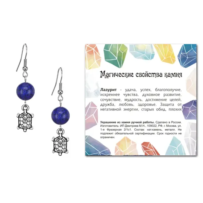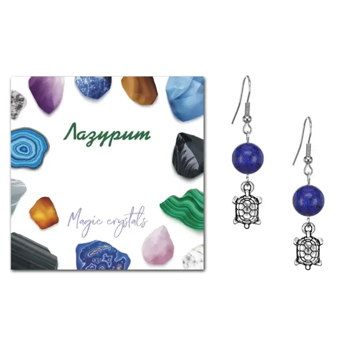 Серьги Черепаха (здоровье и долголетие), Лазурит SEB07-13-16