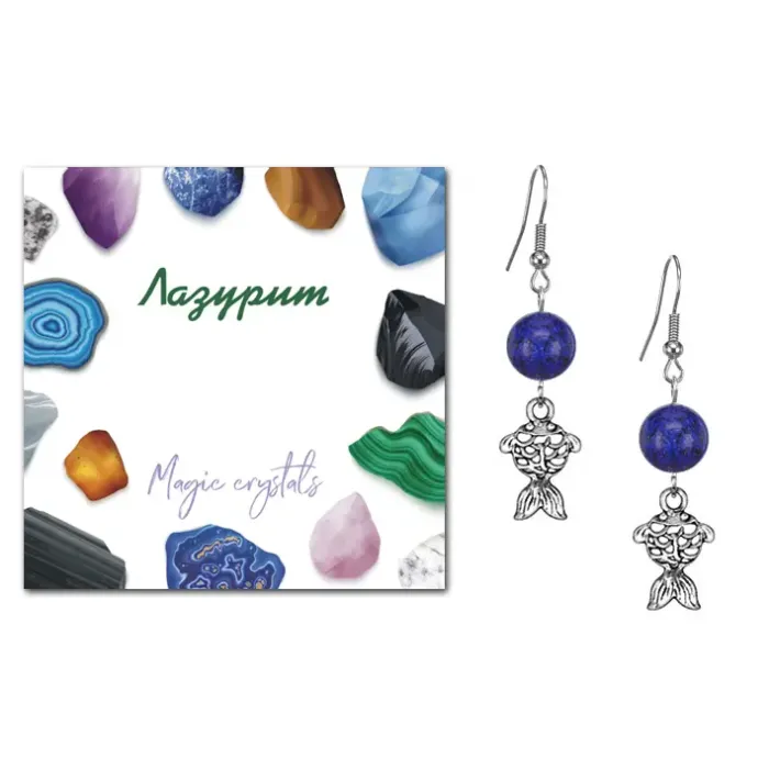 Серьги Золотая рыбка (исполнение желаний), Лазурит SEB07-13-27