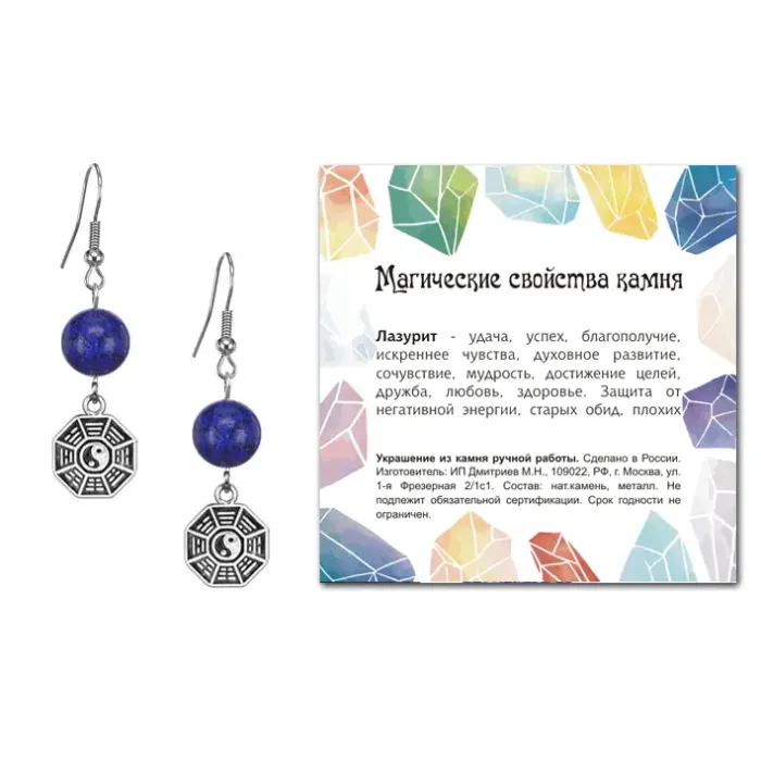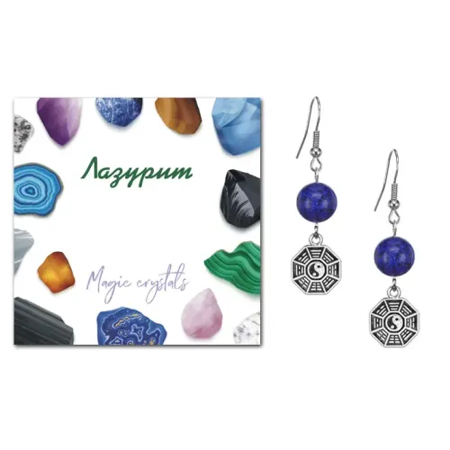 Серьги Багуа (защита от негативной энергии), Лазурит SEB07-13-34