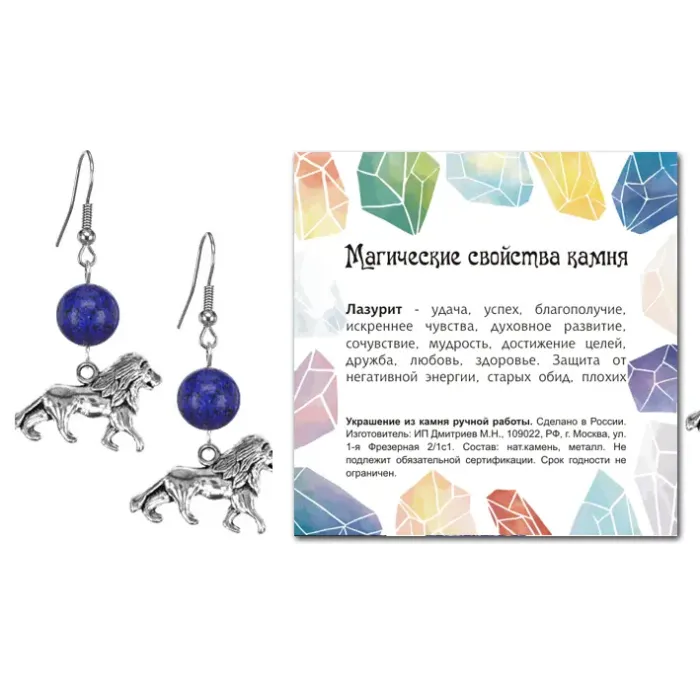 Серьги Лев (храбрость, власть, благосостояние), Лазурит SEB07-13-2073