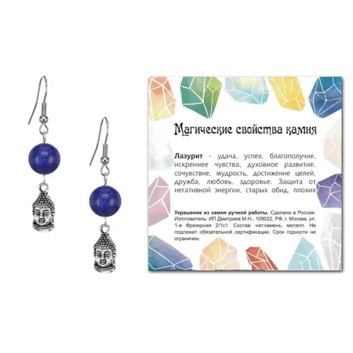 Серьги Будда (защита, духовное развитие), Лазурит SEB07-13-2074