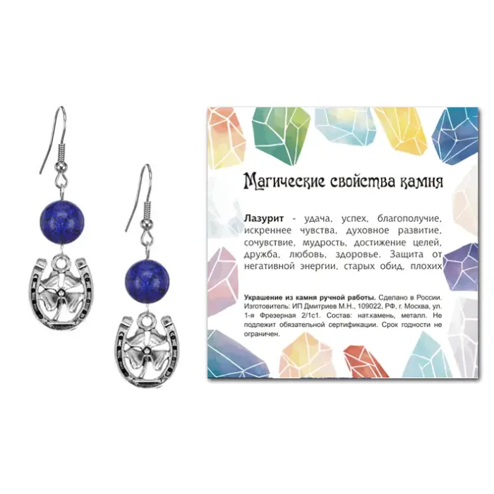 Серьги Подкова и клевер (счастье и удача), Лазурит SEB07-13-P001