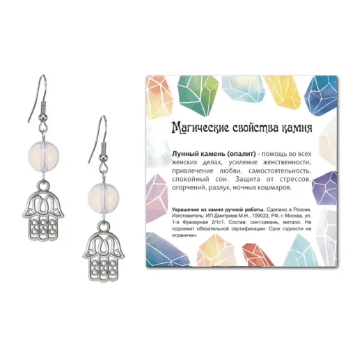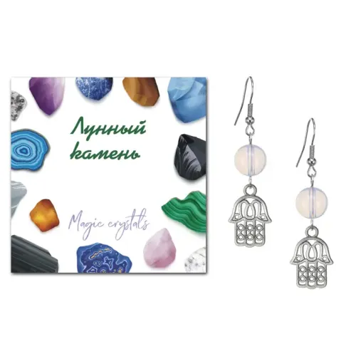 Серьги Хамса (от сглаза и зла), Лунный камень SEB07-14-01