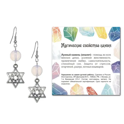 Серьги Звезда Давида (от сглаза и зла), Лунный камень SEB07-14-02
