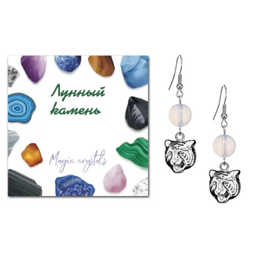 Серьги Тигр (защита, сила, победа), Лунный камень SEB07-14-10