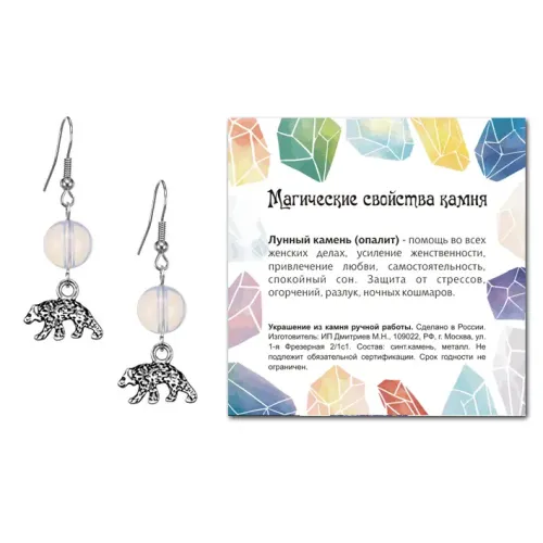 Серьги Медведь (защита, сила, победа), Лунный камень SEB07-14-19