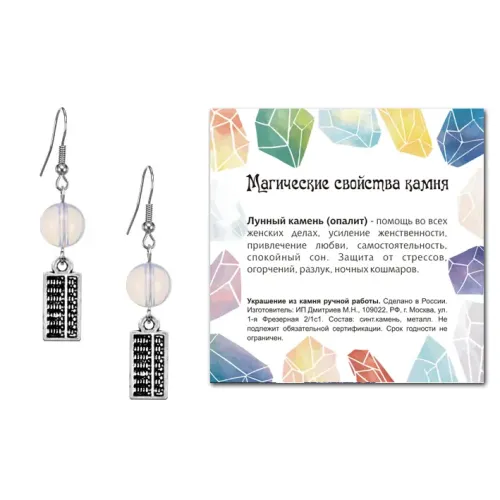 Серьги Счеты (богатство), Лунный камень SEB07-14-21