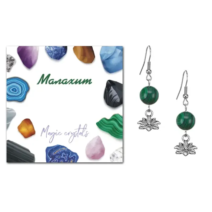 Серьги Лотос (гармония и развитие), Малахит SEB07-15-15