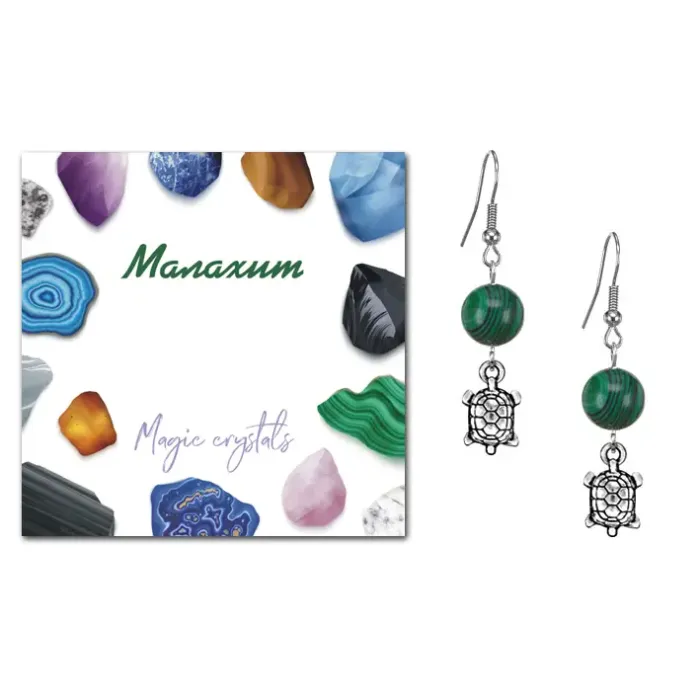 Серьги Черепаха (здоровье и долголетие), Малахит SEB07-15-16
