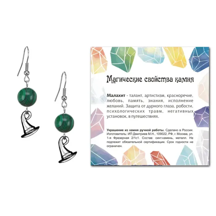 Серьги Волшебная шляпа (магический дар), Малахит SEB07-15-20