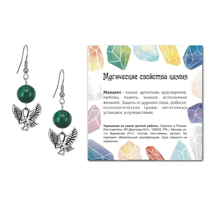 Серьги Орел (защита, сила, победа), Малахит SEB07-15-24