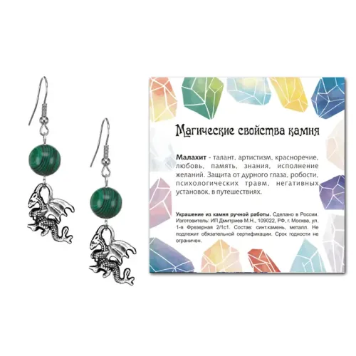 - Упаковка включает прозрачный пакет с подвесом и вкладыш с описанием значения камня, что делает серьги отличным подарком для близких или себя.