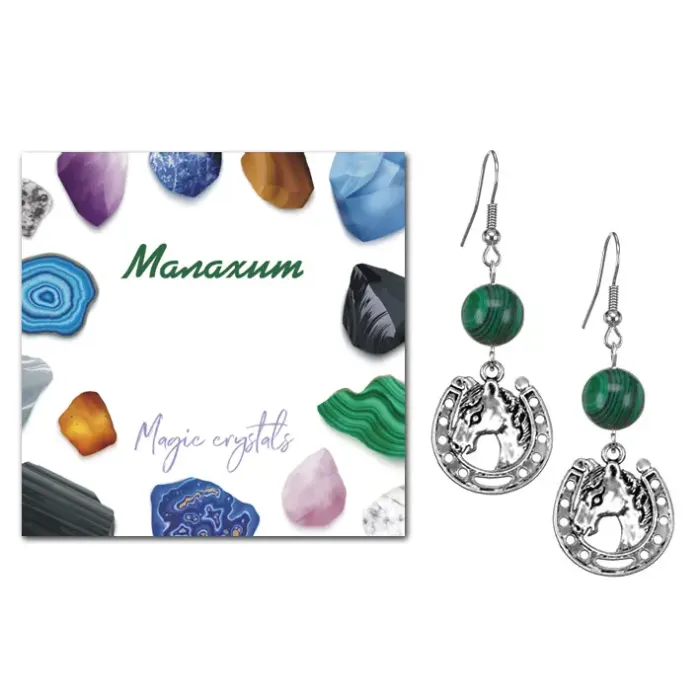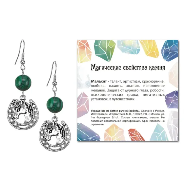 Серьги Подкова (счастье), Малахит SEB07-15-31