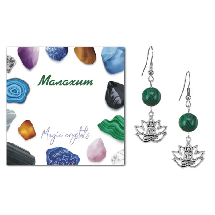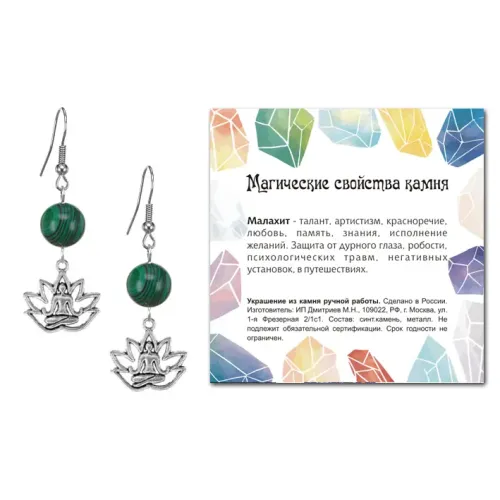 Серьги Лотос (гармония и развитие), Малахит SEB07-15-2064
